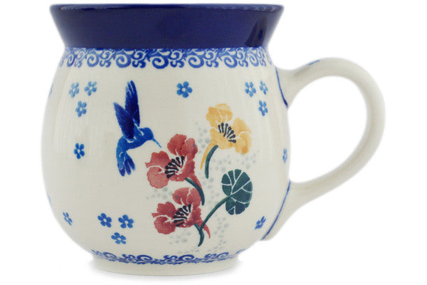 This Polish Pottery 16 oz Bubble Mug - Nifty Nectar is handmade and handpainted by the Ceramika Artystyczna factory in Boleslawiec, Poland.