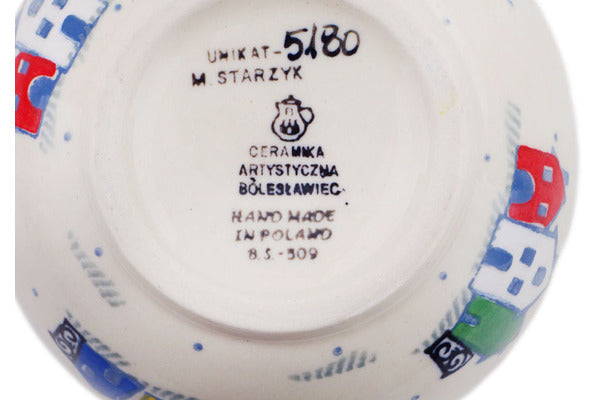 This Polish Pottery 16 oz Bubble Mug - Happy Neighborhood is handmade and handpainted by the Ceramika Artystyczna factory in Boleslawiec, Poland.