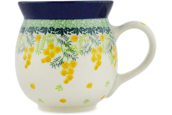 This Polish Pottery 16 oz Bubble Mug - Yellow Billy Buttons is handmade and handpainted by the Ceramika Artystyczna factory in Boleslawiec, Poland.