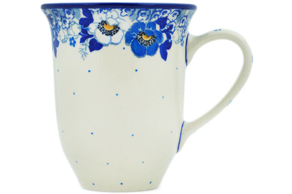 This Polish Pottery 17 oz Mug - Blue Spring Blue is handmade and handpainted by the Ceramika Artystyczna factory in Boleslawiec, Poland.