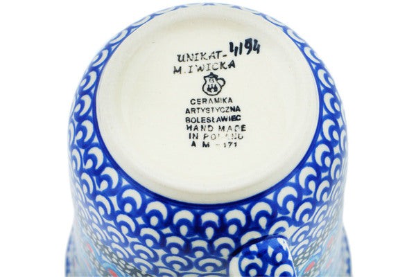 This Polish Pottery 17 oz Mug - Blueberry Flowers is handmade and handpainted by the Ceramika Artystyczna factory in Boleslawiec, Poland.