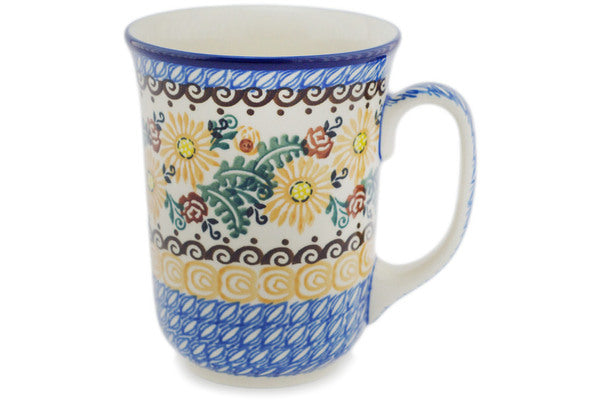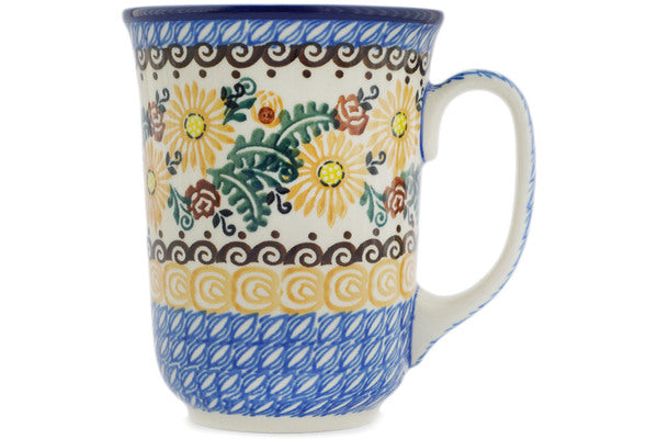 This Polish Pottery 17 oz Mug - Fall Sunflowers is handmade and handpainted by the Ceramika Artystyczna factory in Boleslawiec, Poland.