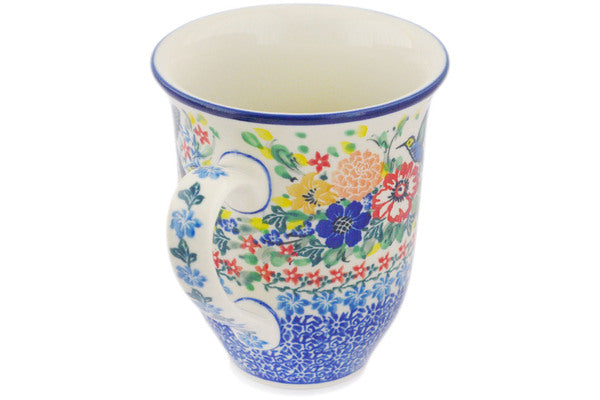 This Polish Pottery 17 oz Mug - Hummingbird Meadow is handmade and handpainted by the Ceramika Artystyczna factory in Boleslawiec, Poland.