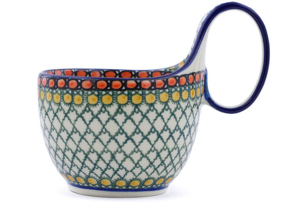 This Polish Pottery 6" Bowl with Loop-Handle - Orange Tranquility is handmade and handpainted by the Ceramika Artystyczna factory in Boleslawiec, Poland.