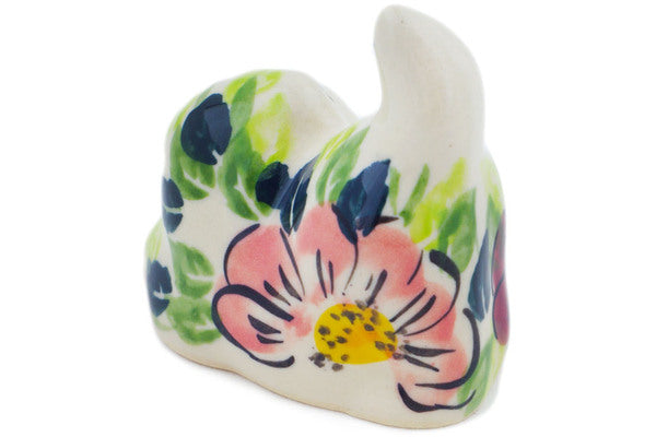 This Polish Pottery 2" Cat Figurine - Maroon Blossoms is handmade and handpainted by the Ceramika Nina factory in Boleslawiec, Poland.