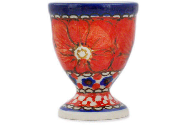 This Polish Pottery 2" Egg Holder - Crimson Poppies is handmade and handpainted by the Ceramika Artystyczna factory in Boleslawiec, Poland.