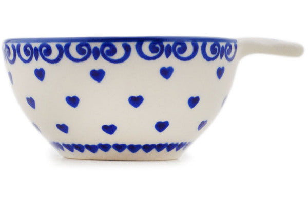 This Polish Pottery 2 oz Measuring Cup - Sea Of Hearts is handmade and handpainted by the Manufaktura factory in Boleslawiec, Poland.
