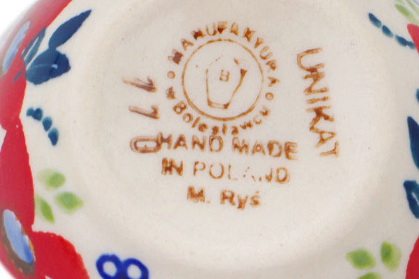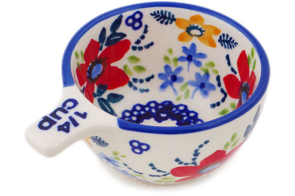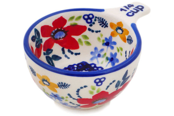 This Polish Pottery 2 oz Measuring Cup - Wild Flower Bloom is handmade and handpainted by the Manufaktura factory in Boleslawiec, Poland.