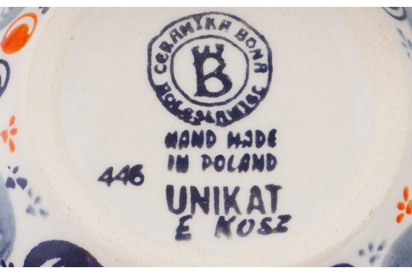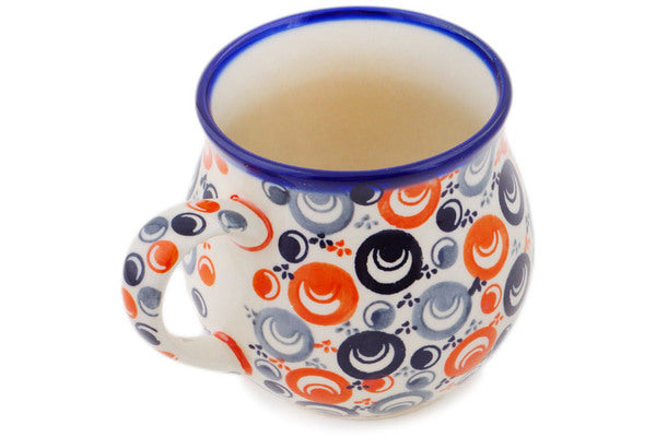 This Polish Pottery 21 oz Bubble Mug - Red Peacock Eye is handmade and handpainted by the Ceramika Bona factory in Boleslawiec, Poland.