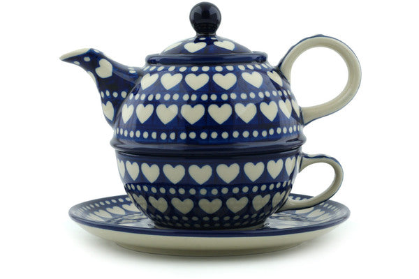 This Polish Pottery 22 oz Tea Set for One - Heart To Heart is handmade and handpainted by the Ceramika Artystyczna factory in Boleslawiec, Poland.