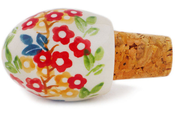 This Polish Pottery 3" Bottle Stopper - Tropical Bloomscape is handmade and handpainted by the Manufaktura factory in Boleslawiec, Poland.