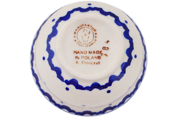 This Polish Pottery 3" Bowl - Orange And Blue Flower is handmade and handpainted by the Manufaktura factory in Boleslawiec, Poland.