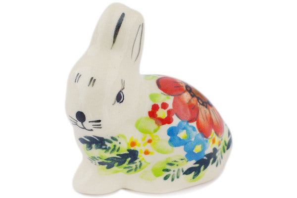This Polish Pottery 3" Bunny Figurine - Bold Red Poppies is handmade and handpainted by the Ceramika Bona factory in Boleslawiec, Poland.