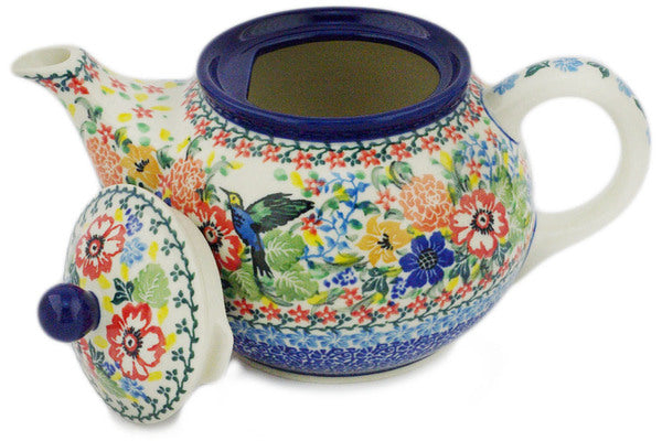 This Polish Pottery 30 oz Tea or Coffee Pot - Hummingbird Meadow is handmade and handpainted by the Ceramika Artystyczna factory in Boleslawiec, Poland.