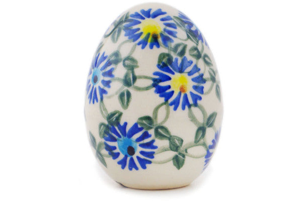 This Polish Pottery 3" Egg Figurine - Blue Thistle Beauty is handmade and handpainted by the Ceramika Bona factory in Boleslawiec, Poland.