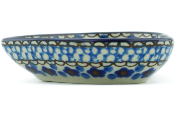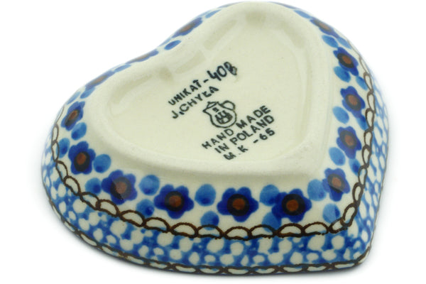 This Polish Pottery 3" Mini Heart Bowl - Cobalt Poppies is handmade and handpainted by the Ceramika Artystyczna factory in Boleslawiec, Poland.