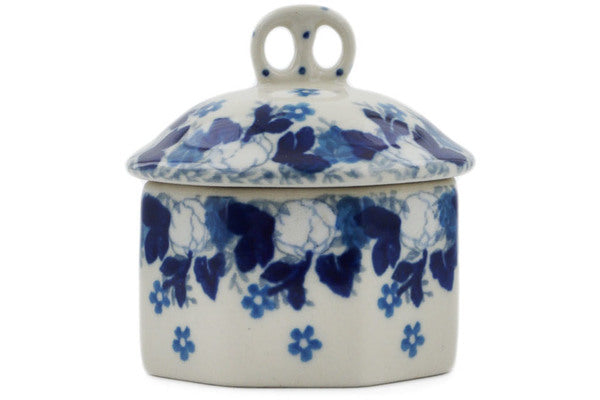 This Polish Pottery 3" Jar with Lid - Blue Spring is handmade and handpainted by the Ceramika Artystyczna factory in Boleslawiec, Poland.