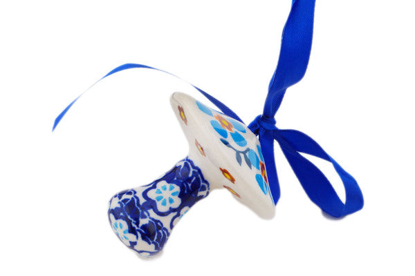 This Polish Pottery 3" Mushroom Ornament - Blue Chain is handmade and handpainted by the Manufaktura factory in Boleslawiec, Poland.