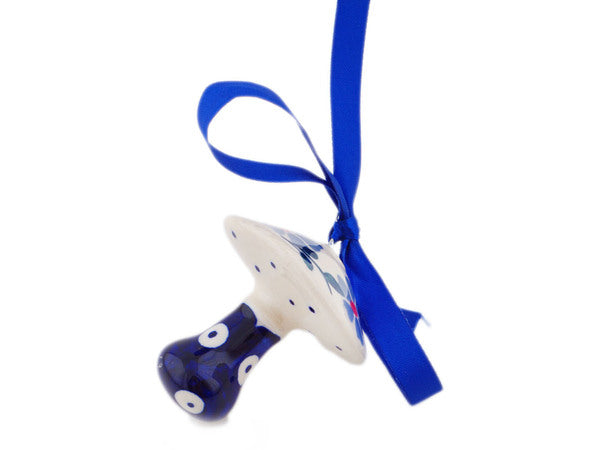 This Polish Pottery 3" Mushroom Ornament - Peacock Forget-Me-Not is handmade and handpainted by the Manufaktura factory in Boleslawiec, Poland.