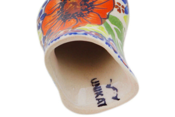 This Polish Pottery 3" Pie Bird - Orange Zinnia is handmade and handpainted by the Ceramika Nina factory in Boleslawiec, Poland.