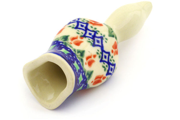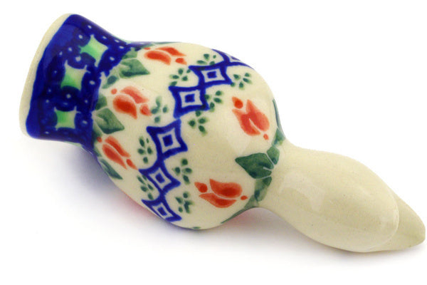 This Polish Pottery 3" Pie Bird - Tulips And Diamonds is handmade and handpainted by the Ceramika Bona factory in Boleslawiec, Poland.