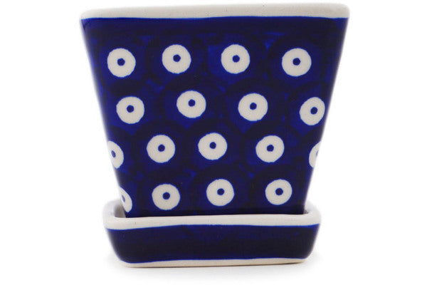 This Polish Pottery 3" Planter - Peacock Eyes is handmade and handpainted by the Manufaktura factory in Boleslawiec, Poland.