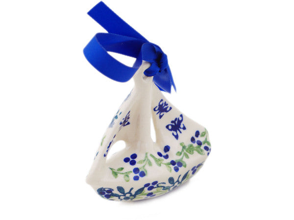 This Polish Pottery 3" Sailboat Ornament - Last Summer Flowers is handmade and handpainted by the Manufaktura factory in Boleslawiec, Poland.