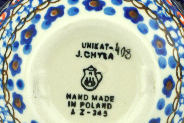 This Polish Pottery 3" Scalloped Bowl - Cobalt Poppies is handmade and handpainted by the Ceramika Artystyczna factory in Boleslawiec, Poland.