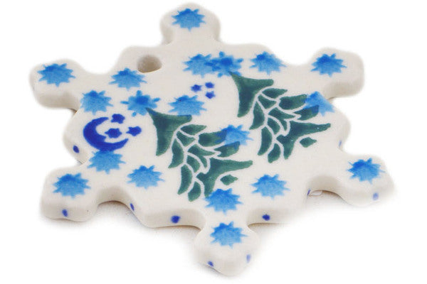 This Polish Pottery 3" Snowflake Pendant - Snowy Forest is handmade and handpainted by the Ceramika Artystyczna factory in Boleslawiec, Poland.