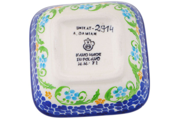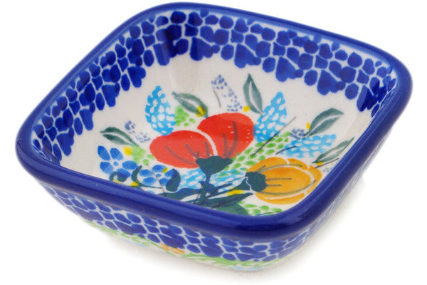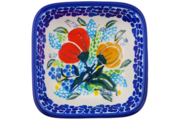 This Polish Pottery 3" Square Bowl - Blooming Joy is handmade and handpainted by the Ceramika Artystyczna factory in Boleslawiec, Poland.