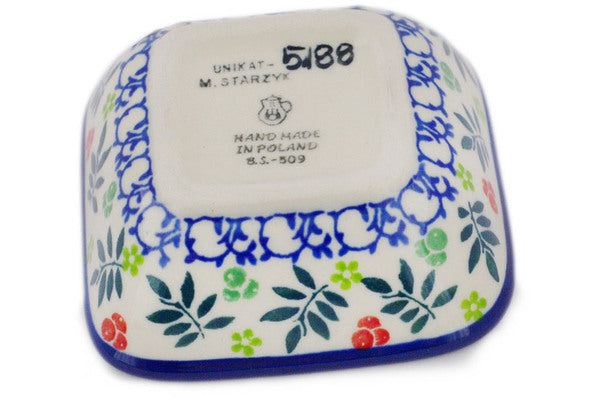 This Polish Pottery 3" Square Bowl - Robin & Wren is handmade and handpainted by the Ceramika Artystyczna factory in Boleslawiec, Poland.