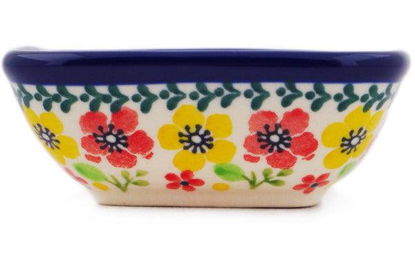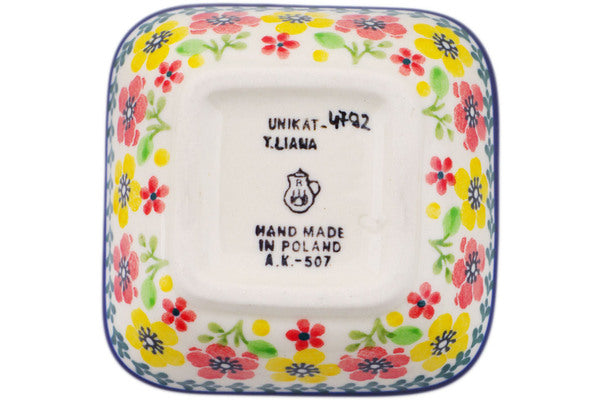 This Polish Pottery 3" Square Bowl - Spring Bliss is handmade and handpainted by the Ceramika Artystyczna factory in Boleslawiec, Poland.