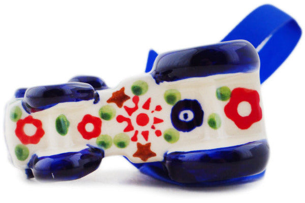 This Polish Pottery 3" Tractor Ornament - Botanical Sprinkles is handmade and handpainted by the Manufaktura factory in Boleslawiec, Poland.