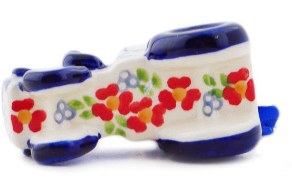 This Polish Pottery 3" Tractor Ornament - Red Chains is handmade and handpainted by the Manufaktura factory in Boleslawiec, Poland.