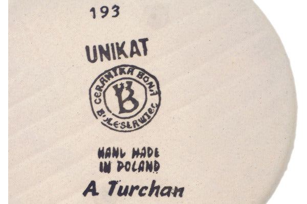 This Polish Pottery 4" Coaster - Blue Thistle Beauty is handmade and handpainted by the Ceramika Bona factory in Boleslawiec, Poland.