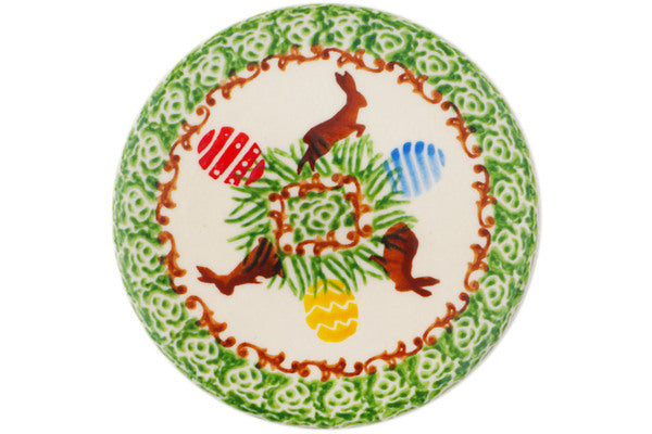 This Polish Pottery 4" Coaster - Chocolate Bunny is handmade and handpainted by the Ceramika Bona factory in Boleslawiec, Poland.