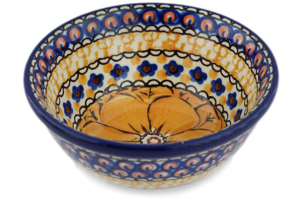 This Polish Pottery 4" Bowl - Marigold Dreams is handmade and handpainted by the Ceramika Artystyczna factory in Boleslawiec, Poland.
