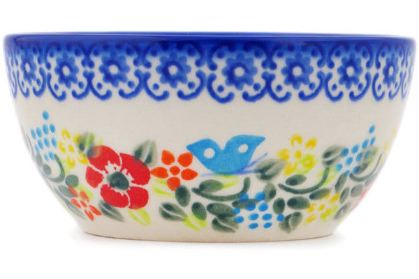 This Polish Pottery 4" Bowl - Ring Of Meadow Flowers is handmade and handpainted by the Ceramika Bona factory in Boleslawiec, Poland.