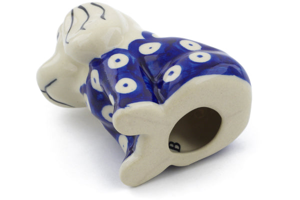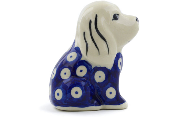 This Polish Pottery 4" Dog Figurine - Blue Eyed Peacock is handmade and handpainted by the Ceramika Bona factory in Boleslawiec, Poland.