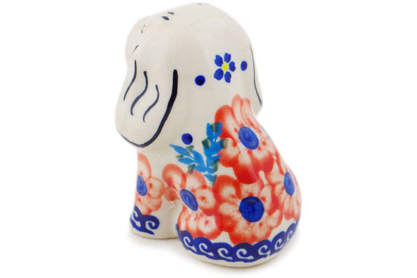 This Polish Pottery 4" Dog Figurine - Flower Star is handmade and handpainted by the Ceramika Bona factory in Boleslawiec, Poland.