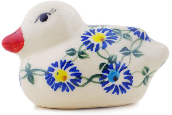This Polish Pottery 4" Duck Figurine - Blue Thistle Beauty is handmade and handpainted by the Ceramika Bona factory in Boleslawiec, Poland.