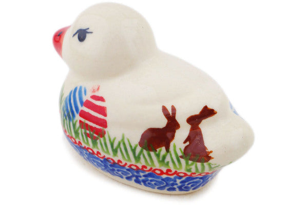 This Polish Pottery 4" Duck Figurine - Bun Bun Delight is handmade and handpainted by the Ceramika Bona factory in Boleslawiec, Poland.