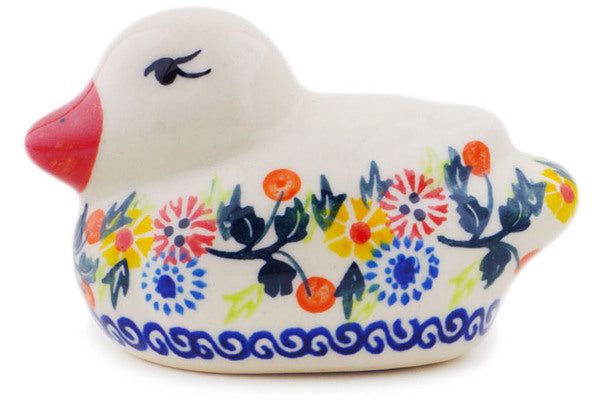 This Polish Pottery 4" Duck Figurine - Pastel Spring Wreath is handmade and handpainted by the Ceramika Bona factory in Boleslawiec, Poland.