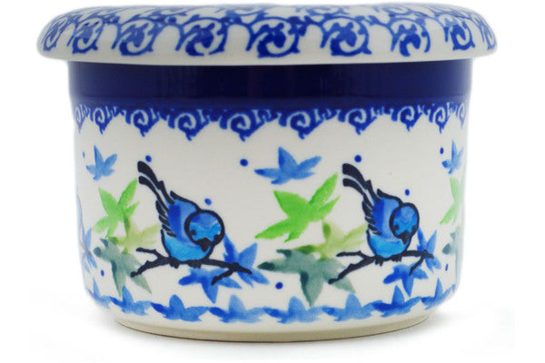 This Polish Pottery 4" Butter Dish - Birdy Babies is handmade and handpainted by the Ceramika Artystyczna factory in Boleslawiec, Poland.