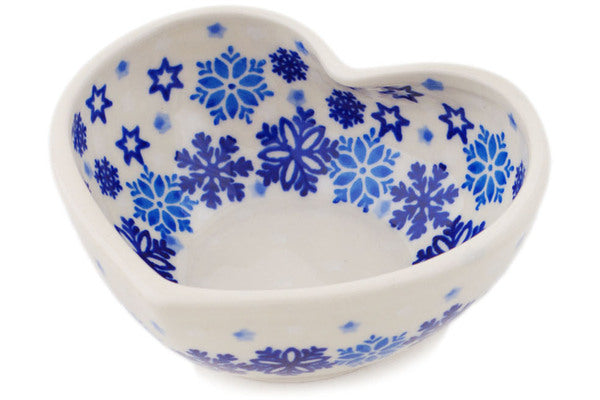 This Polish Pottery 4" Heart Shaped Bowl - Snowdrift is handmade and handpainted by the Manufaktura factory in Boleslawiec, Poland.