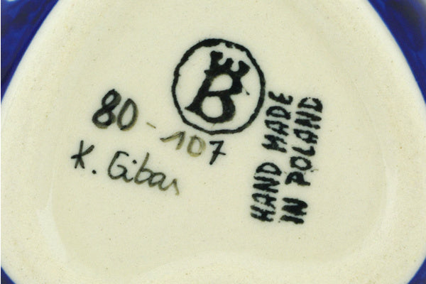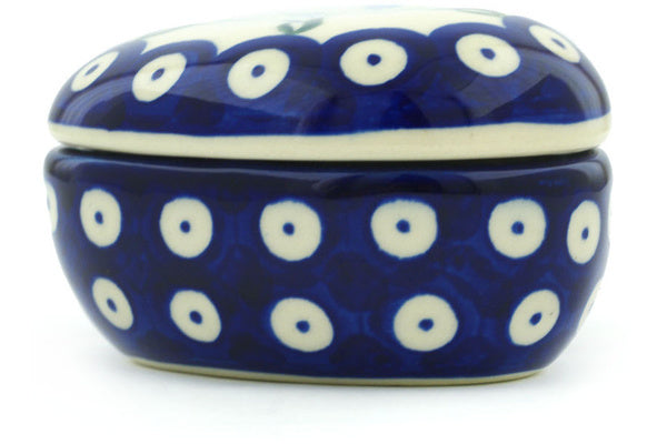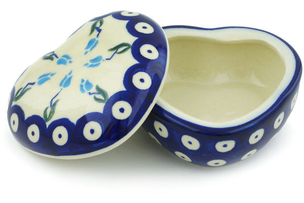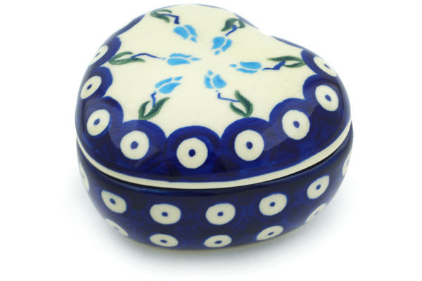 This Polish Pottery 4" Heart Shaped Jar - Peacock Tulip Garden is handmade and handpainted by the Ceramika Bona factory in Boleslawiec, Poland.