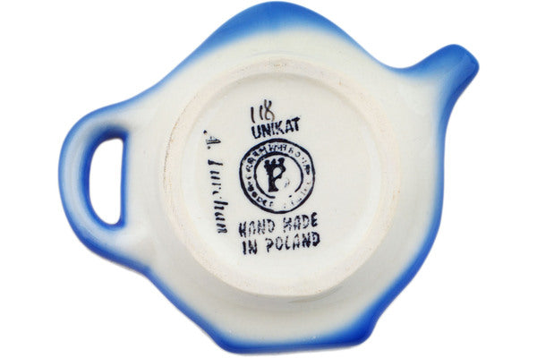 This Polish Pottery 4" Tea Bag or Lemon Plate - Grecian Fields is handmade and handpainted by the Ceramika Bona factory in Boleslawiec, Poland.