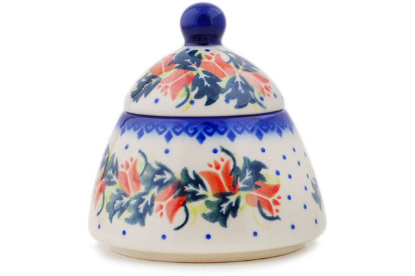 This Polish Pottery 4" Jar with Lid - California Poppies is handmade and handpainted by the Ceramika Bona factory in Boleslawiec, Poland.