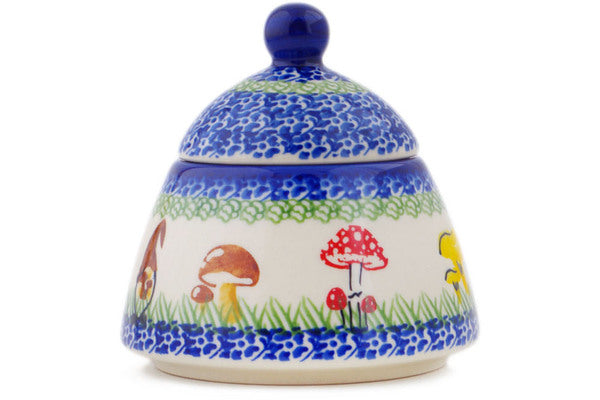 This Polish Pottery 4" Jar with Lid - Mushroom Garden is handmade and handpainted by the Ceramika Nina factory in Boleslawiec, Poland.