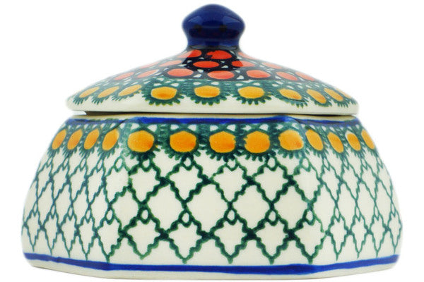 This Polish Pottery 4" Jar with Lid - Orange Tranquility is handmade and handpainted by the Ceramika Artystyczna factory in Boleslawiec, Poland.